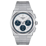 Created for those with an eye for design and packed with twenty-first century features in a Tissot case shape from 1978, the PRX Chrono is a must-have on every watch fans wish list. This 42mm satin-finished steel watch follows the PRXs sleek, angular form, adding to the laid-back 1970's sports watch style with a so-called reverse panda dial. The PRX Chrono is powered by the Valjoux A05.H31 calibre, which provides the design with the classic 3, 6 and 9 chronograph dial layout and an extended 60-hour power reserve.